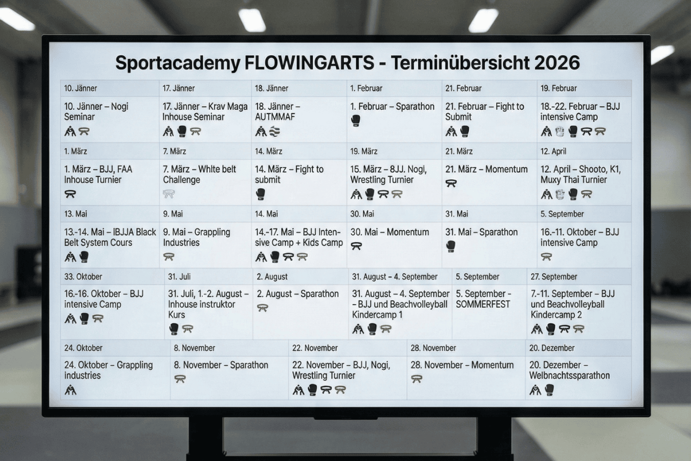 Unser Veranstaltungskalender für 2026 ist da! Freu dich auf eine Vielzahl an Camps in Spanien, Italien und Deutschland, spannende Turniere und Seminare mit Profis sowie diverse Sparathons